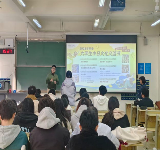 永旺梦乐城商场活动的负责人介绍了本次“大学生中日文化交流节”,活动分为动漫舞蹈、猜谜、手工三大板块及具体环节,邀请同学们积极参与,亲身感受活动的魅力。