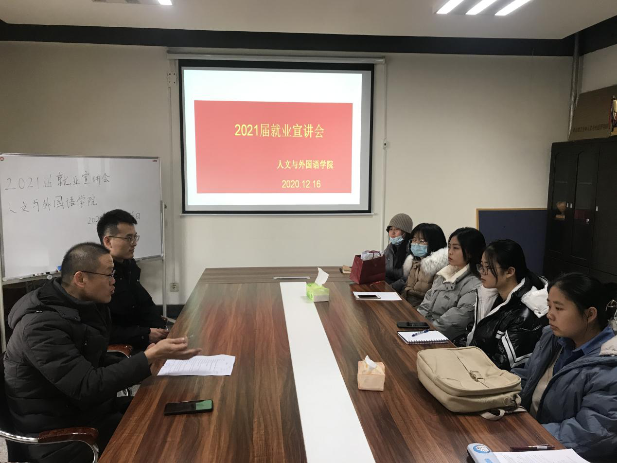 为拓宽人外学院2021届毕业生就业渠道,实现高校毕业生高质量就业的目标,学院于12月16日,在主教学楼A204召开新华锦集团山东海川工艺发制品有限公司校园招聘宣讲会。新华锦集团山东海川工艺发制品有限公司宋健担任招聘会主讲,辅导员辛雪梅、扎西央宗参加,人外学院2021届毕业生参会。