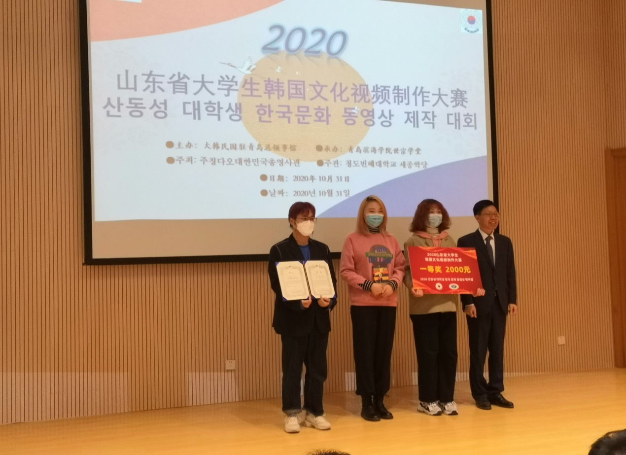 2020年10月31日,由大韩民国驻青岛领事馆主办的2020年山东省大学生韩国文化视频制作大赛在青岛滨海学院国际学术交流中心圆满结束。