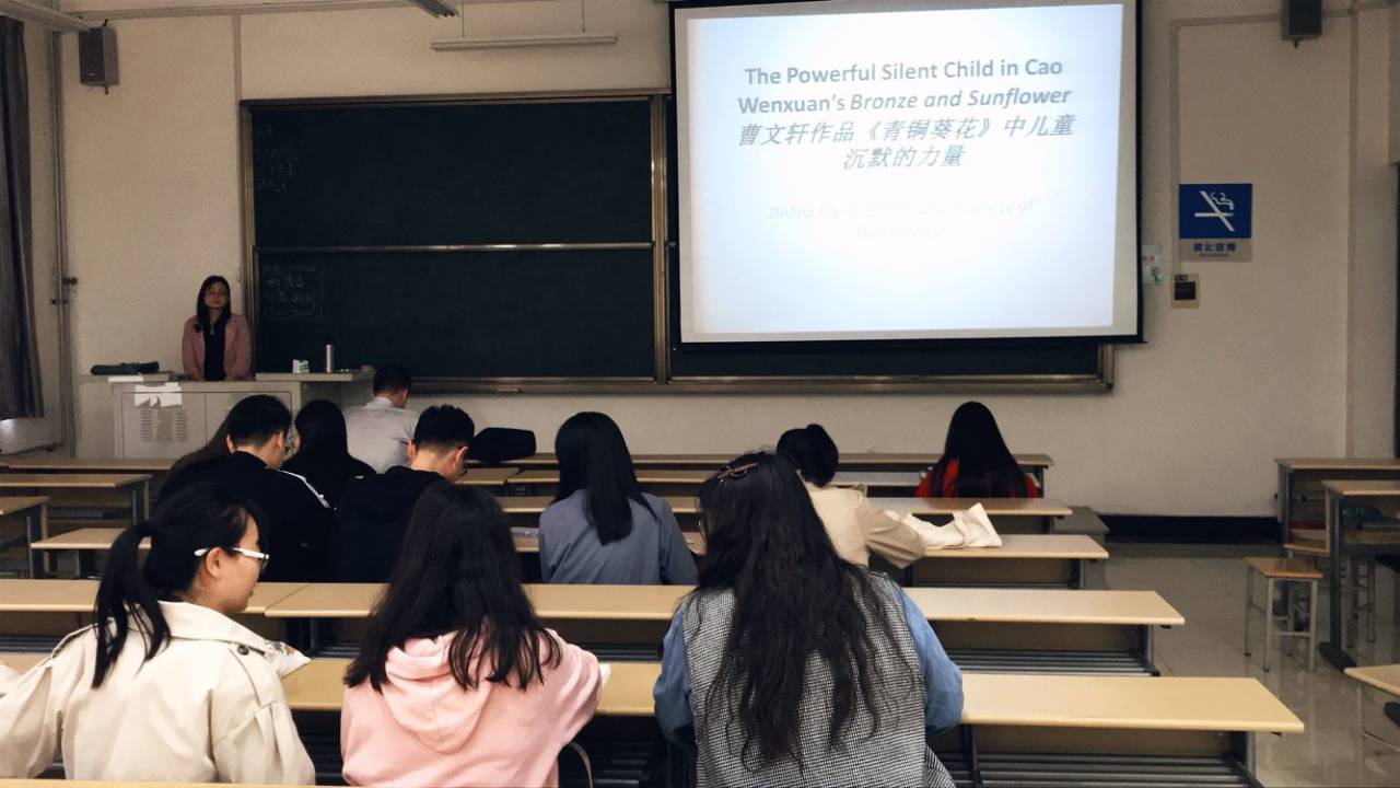 2019年10月9日14点,402永利集团新论语讲坛第52场科研讲座在嘉陵江校区B105教室如期举行。此次讲座由大学外语教研室江建利副教授主讲,题目为“曹文轩作品《青铜葵花》中儿童沉默的力量——国际儿童文学学会(IRSCL)双年会的发言论文”,学院部分师生参加了此次讲座。