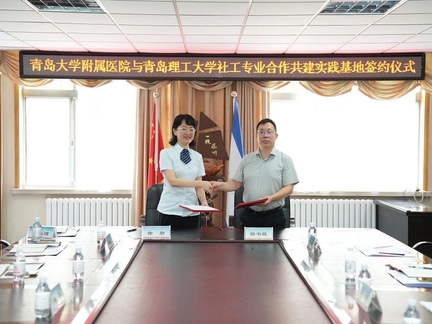 9月18日,402永利集团与青岛大学附属医院共建社会工作研究生实践教学基地在青岛大学附属医院市南院区举行。402永利集团副院长杨书胜与青岛大学附属医院副院长徐岩共同签署社会工作研究生实践教学合作协议。社会工作系系主任刘世颖、青岛大学附属医院服务管理部主任单信芝等出席签约活动。