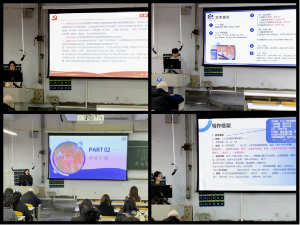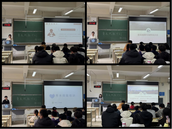 本次培训课程体系完整、内容务实,涵盖思想理论、实务技能与宣传素养三大模块,为学生干部系统“充电赋能”。在思想理论模块,学院团委理论学习组组长辛晓飞、曹佳慧带领大家认真学习习近平总书记致全国青联十四届全委会和全国学联二十八大的重要贺信和党中央致词精神,细致解读了会议内容与青年成长的内在联系,帮助学生干部进一步明晰自身职责与使命。在实务技能模块,学生会办公室负责人李逸涵详细讲解了公文写作的格式规范与语言要求,提升了学生工作的规范性与专业性;负责人高思雨则结合往届优秀案例,分享了从创意构思到落地执行的全流程活动策划方法,激发了学生干部的创新思维。在宣传素养模块,学生会新宣部负责人纪欣雨与研究生会文体部负责人王亚妮聚焦新闻写作,讲授了从选题挖掘到内容提炼的实战技巧;融媒体中心美编组组长陈俊赫现场演示了海报设计与排版软件的操作要领,通过实例分析提升了学员的视觉表达能力。