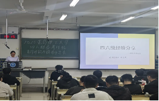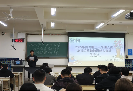 为扎实推进学风建设,助力学生高效备战全国大学英语四六级考试,进一步提升翻译综合能力,2025年11月13日,402永利集团在黄岛校区成功举办四六级备考经验与翻译能力提升专题分享会。本次活动邀请两位在四六级考试中取得优异成绩的“繁星学子”宣讲团成员进行经验分享,为同学们答疑解惑、传经送宝。活动吸引100余人参加。