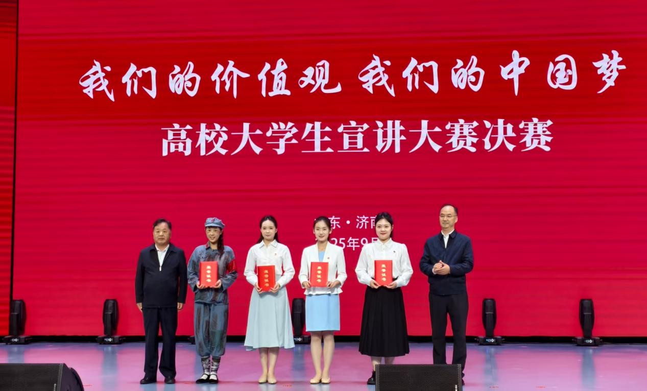 9月27日,由山东省委宣传部、山东省教育厅(省委教育工委)联合主办的“我们的价值观 我们的中国梦”山东高校大学生宣讲比赛决赛在山东师范大学举行。经过激烈角逐,我院2023级网络与新媒体专业学生董锐娴与英语专业学生单骁程共同完成的作品《乌斯浑河中的永生》,凭借深情真挚的讲述和极具感染力的舞台表现,从全省高校32组参赛作品中脱颖而出,荣获一等奖。