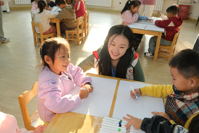 在互动环节,志愿者引导孩子们以绘画表达对长辈的敬意,并在过程中传递感恩理念。学生们在服务中展现出良好的组织协调能力和专业素养,不仅营造了和谐的社区氛围,也进一步拉近了高校与社区之间的距离,体现了大学生参与社区治理、服务基层建设的积极作用。