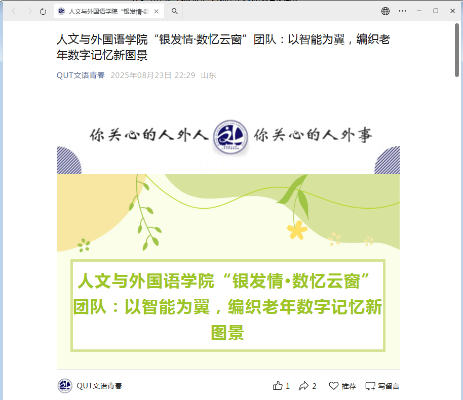 402永利集团“银发情·数忆云窗”团队:以智能为翼,编织老年数字记忆新图景