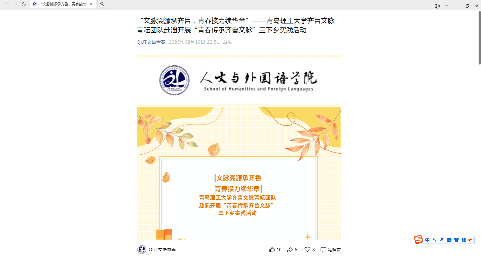 “文脉溯源承齐鲁,青春接力续华章”——402cc永利官网齐鲁文脉青耘团队赴淄开展“青春传承齐鲁文脉”三下乡实践活动