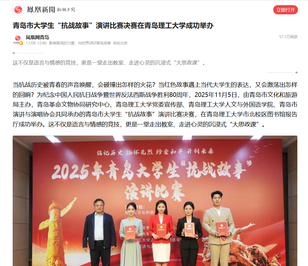 青岛市大学生“抗战故事”演讲比赛决赛在402cc永利官网成功举办__凤凰网