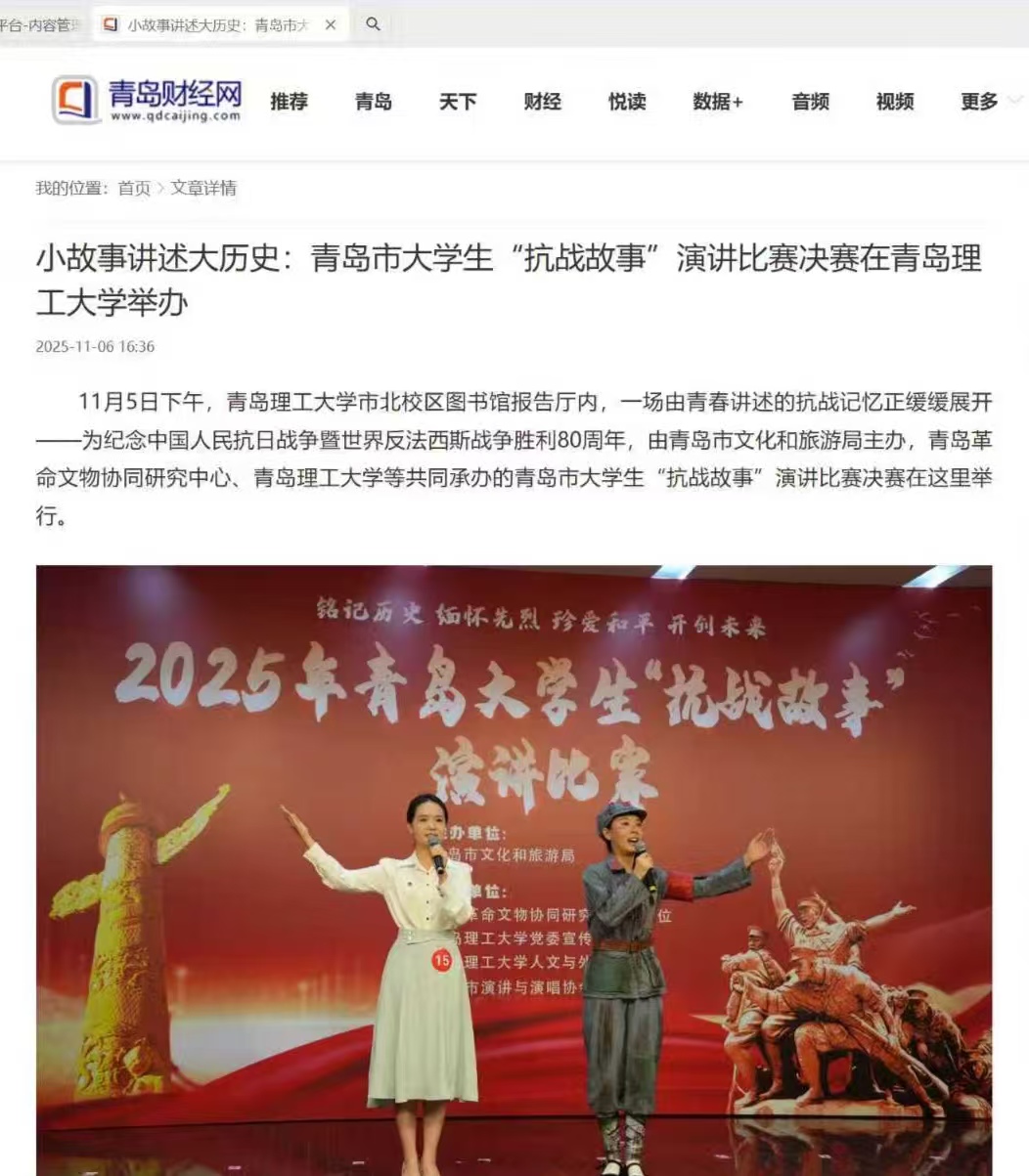 青岛早报:小故事讲述大历史:青岛市大学生“抗战故事”演讲比赛决赛在402cc永利官网举办